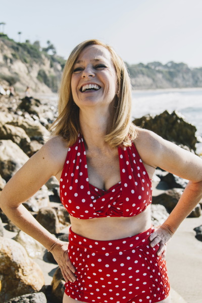 - Sollten Sie zweiteilige Badebekleidung bevorzugen, können Sie Badeshorts mit hoher Taille oder ein Badeunterteil mit einem Bikinioberteil kombinieren.
