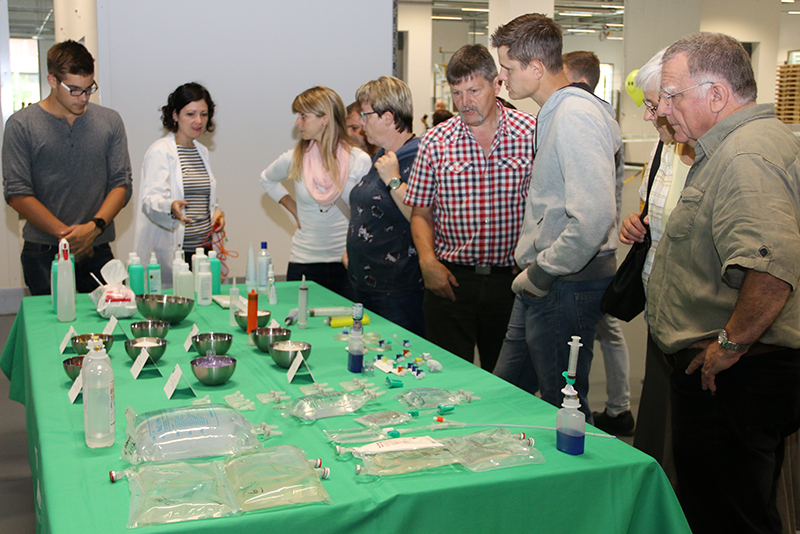 In einer eigens eingerichteten Spitalecke am Schluss des Rundganges beantwortete eine unserer Mitarbeiterinnen die Fragen der Besucherinnen und Besucher und es wurde aufgezeigt, wo die im Werk hergestellten Produkte letztlich zum Einsatz kommen.