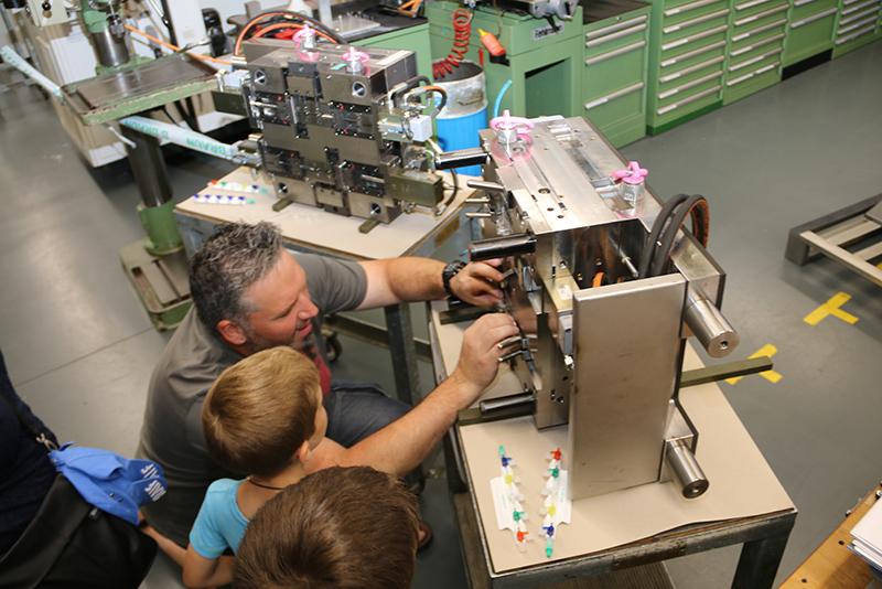 Das Interesse, das dem Family-Day entgegengebracht wurde, übertraf alle Erwartungen. Jeder Mitarbeitende durfte bis zu vier Personen zu diesem speziellen Tag einladen. Insgesamt nutzten über 100 Kinder und Jugendliche sowie 340 Erwachsene die Gelegenheit, das Werk Escholzmatt auf einem spannenden und interessanten Rundgang zu entdecken. An sieben Stationen liefen kurze Filme, die über den jeweiligen Arbeitsplatz Auskunft gaben. Als Hauptdarsteller in den Kurzfilmen wirkten natürlich «echte» Mitarbeitende – sie stellten so ihre Abteilung vor, und der eine oder die andere hätte für diesen Auftritt wahrlich einen Oscar verdient.