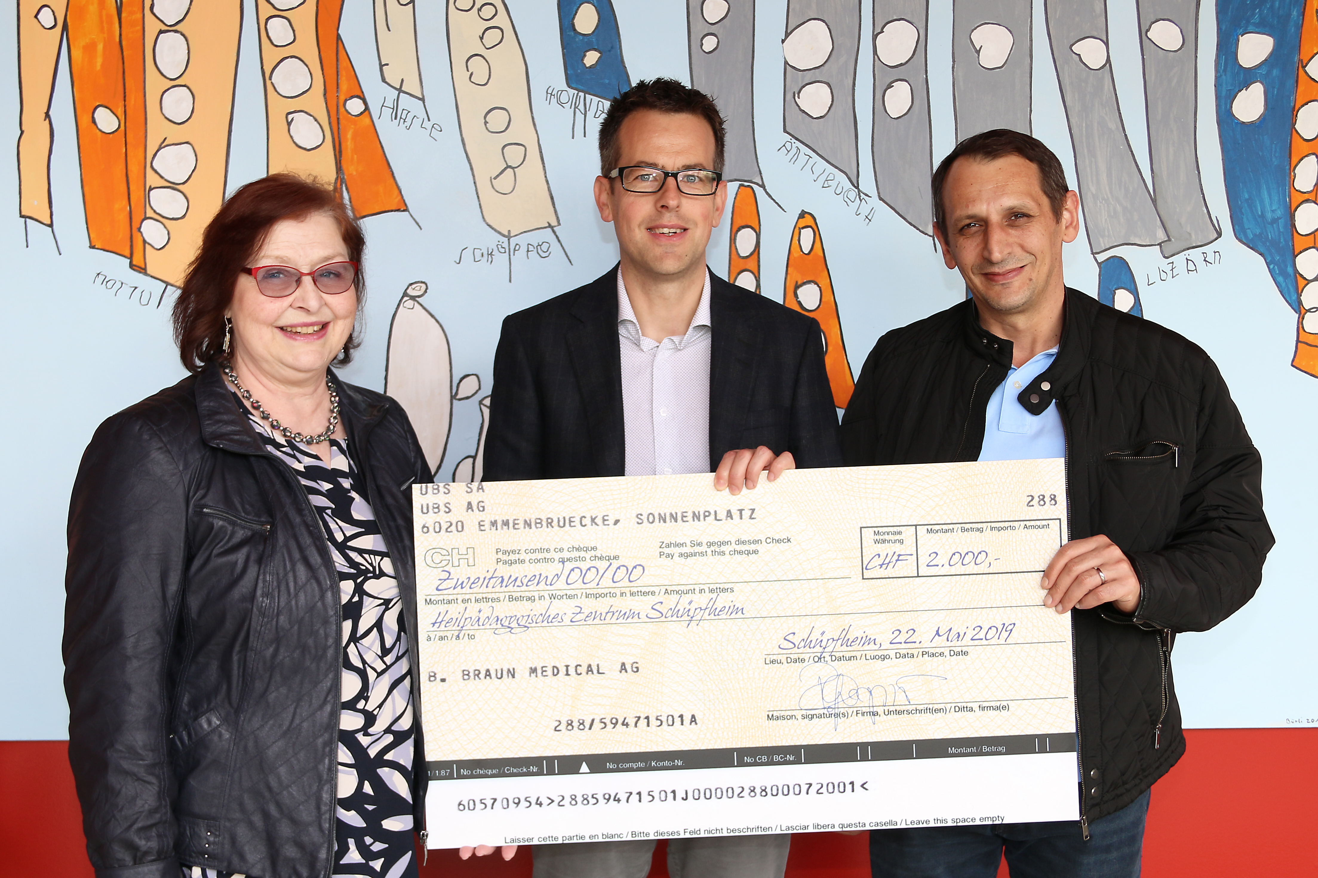 Am 22. Mai überreichte die PEKO-Präsidentin Silvia Bader zusammen mit Sufjan Smaili, Mitglied der PEKO Escholzmatt, einen Check über CHF 2‘000 an Raimund Erni, Leiter des Heilpädagogischen Zentrums Schüpfheim (HPZS). Im HPZ Schüpfheim lernen und arbeiten rund 90 Kinder, Jugendliche und junge Erwachsene mit geistiger und teilweise mehrfacher Behinderung.