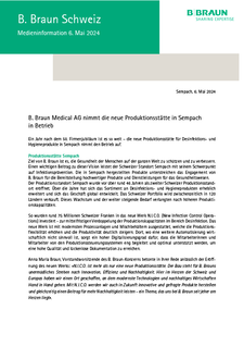 B. Braun Medical AG nimmt die neue Produktionsstätte in Sempach in BetriebMedieninformation von B. Braun Medical - 06.05.2024pdf, 534.0 KBDownload -